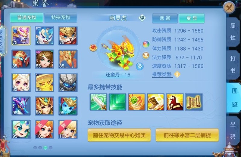 重视PVP内容,75级新秀一出,老虎能很好地填补这一阶段的空缺。还是那句话,值得入手。辅以法术伤害技能,需要以下两类宝宝: